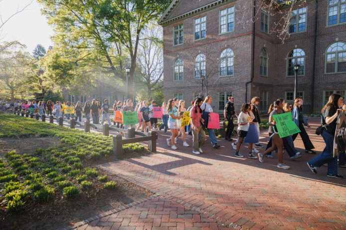 Friday, April 10, students at the College of William and Mary and local community members gathered on Sadler Terrace for the College’s inaugural Take Back the Night event. Take Back the Night is an international event that helps raise awareness about sexual violence and support survivors.